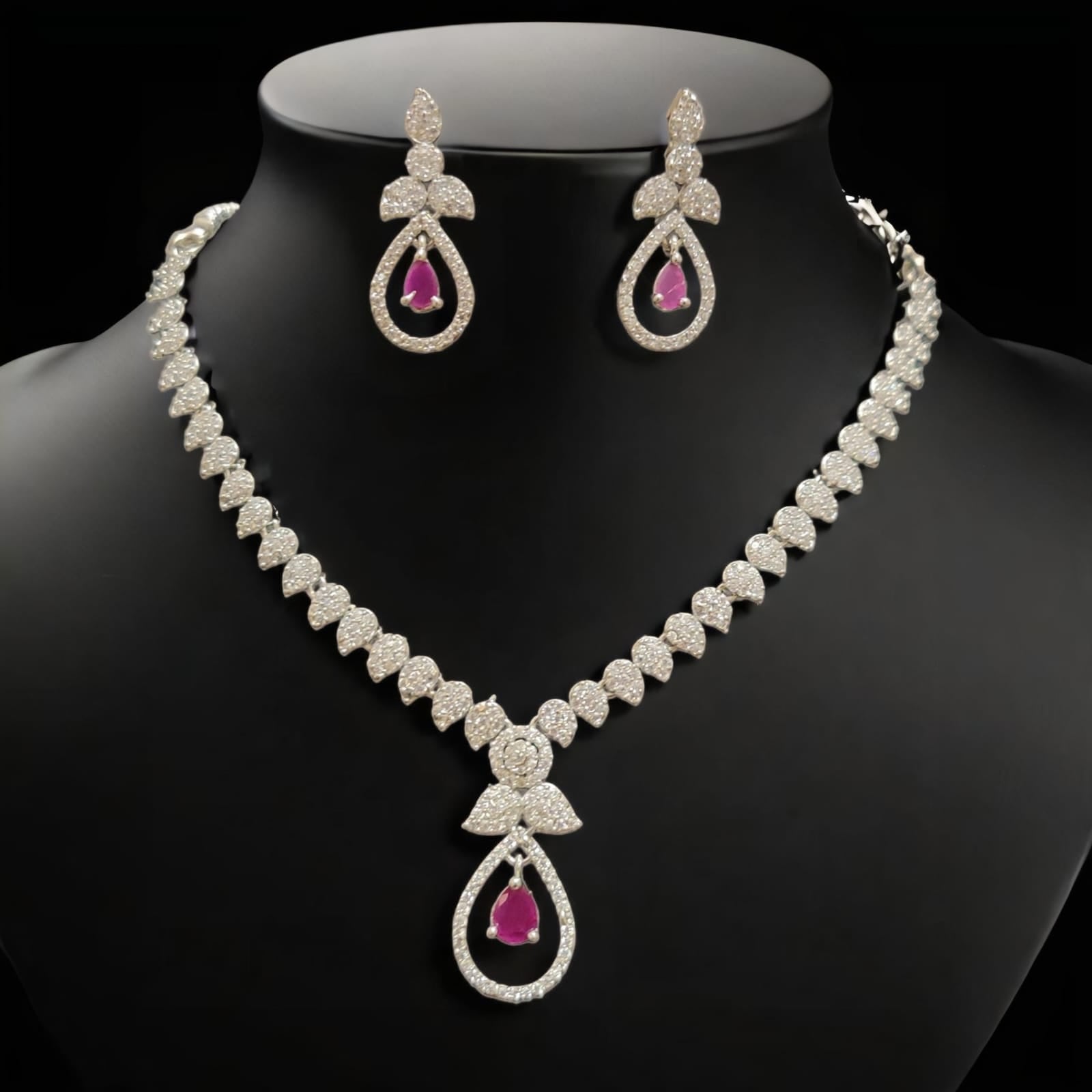 AD STONE WHITE OASIS NECKPIECE WITH EARRINGS RHODIUM PLATED